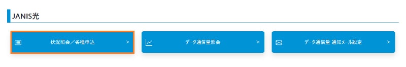 - ② JANIS光の契約状況照会・各種申込、クレジットカード決済の申込、オプションサービスの追加・解約画面を開くためのメニューが表示されます