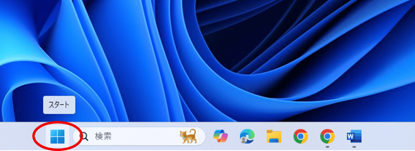 タスクバー(画面下)の「スタート」ボタンをクリックします。