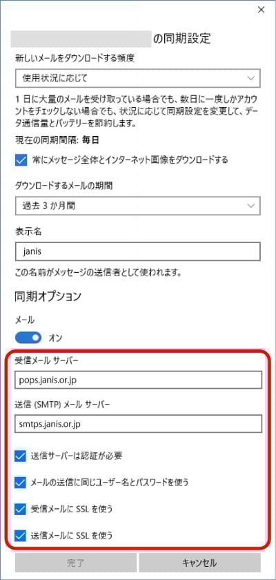 メール設定「Windows10 / 標準メールアプリ」ページ