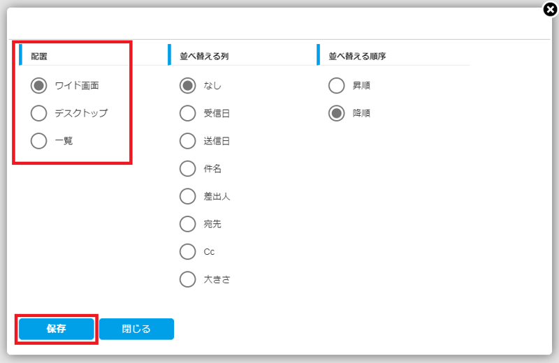 表示されたメニューの「配置」からお好みのものを選択し、保存します。